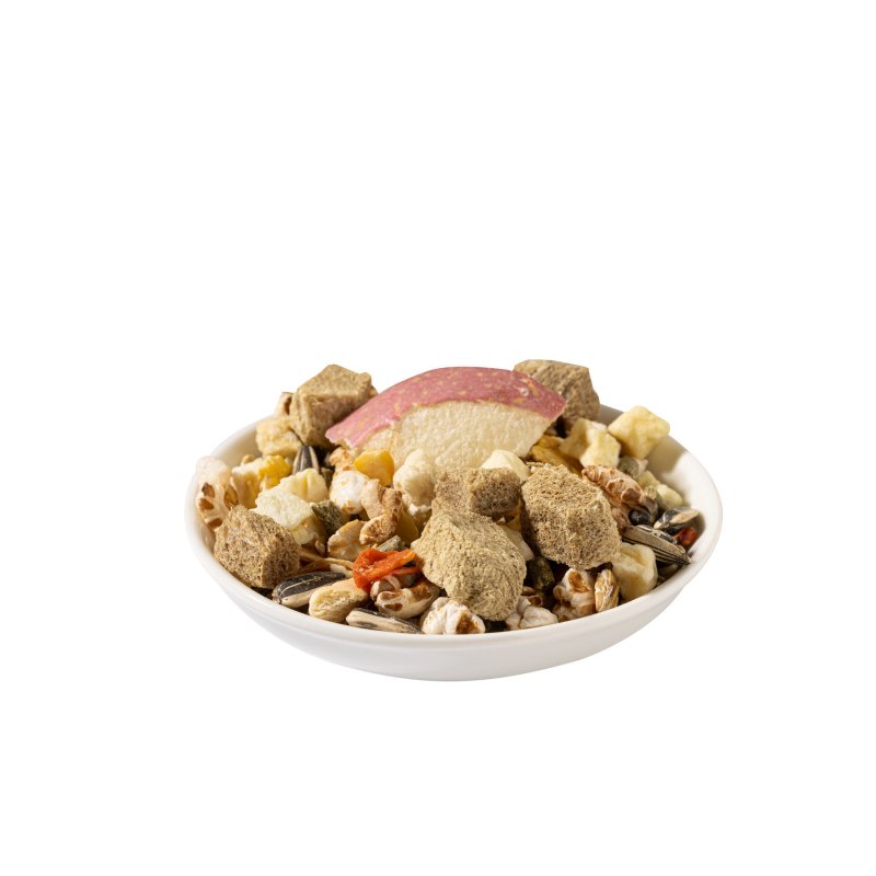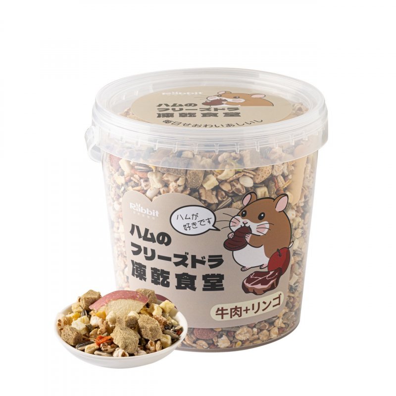 本產品精選高蛋白的牛肉凍乾、富含纖維與維生素的蘋果凍乾,並搭配多樣天然蔬菜,打造專為倉鼠設計的綜合營養飼料,營養均衡、自然健康。