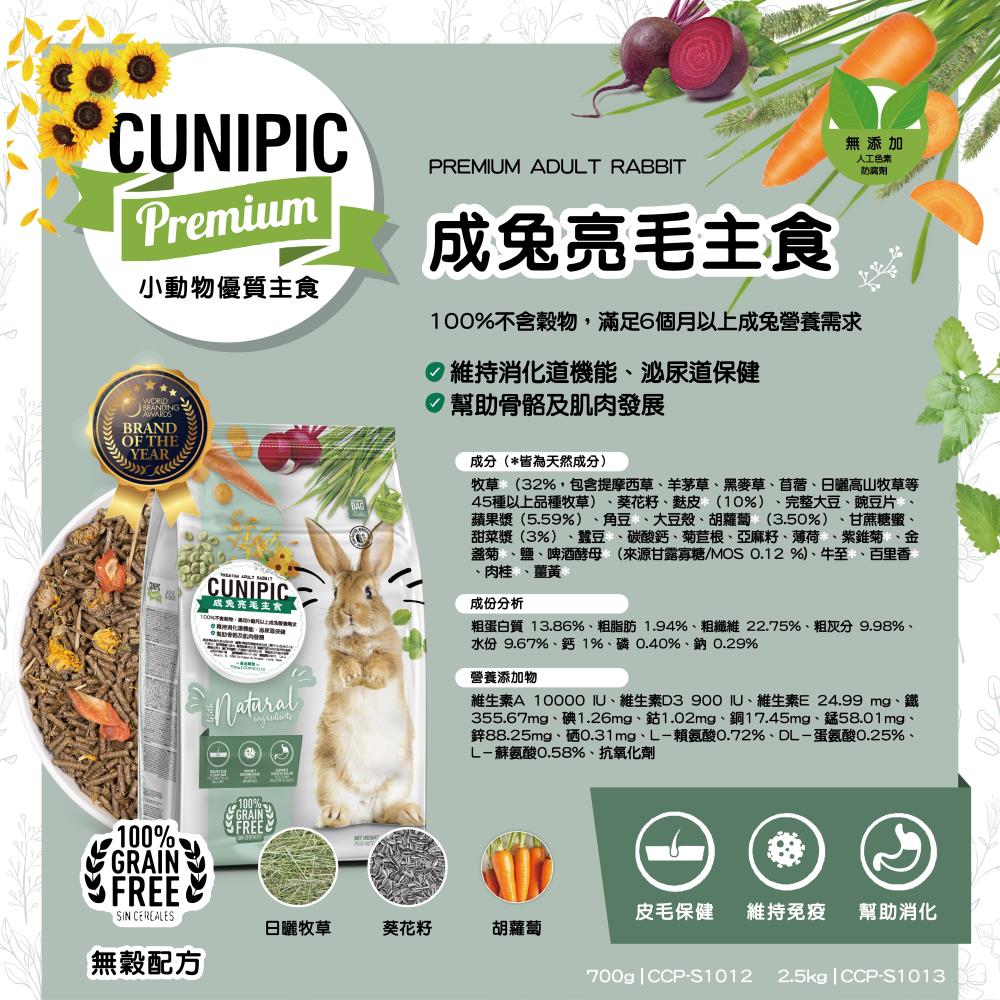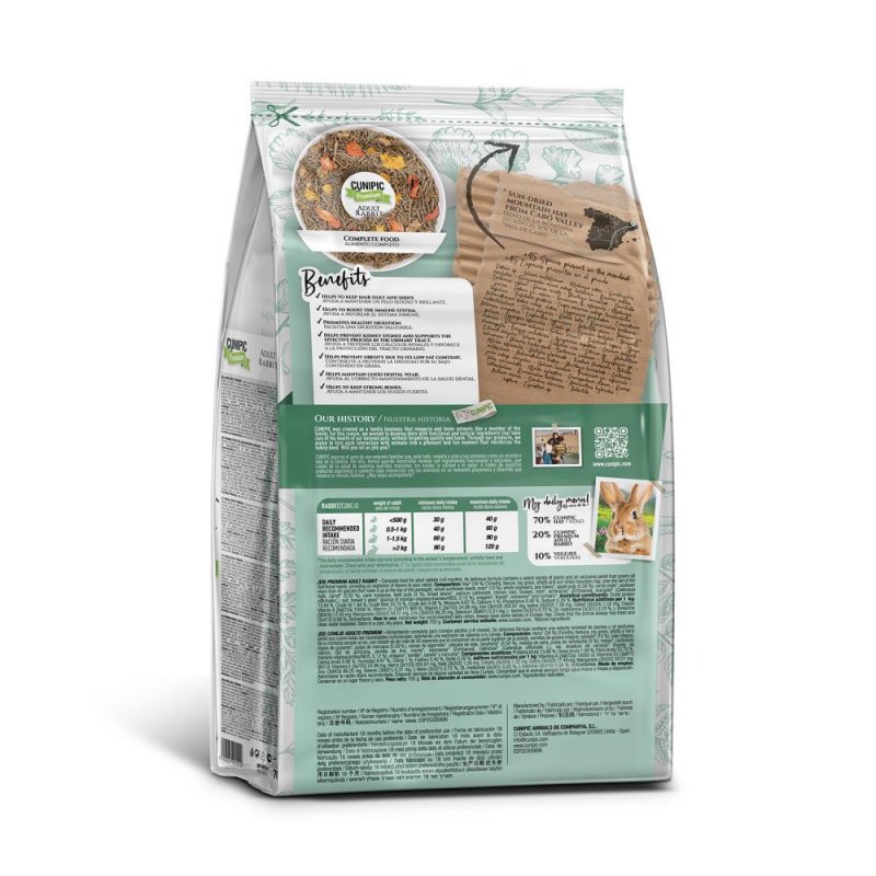 Cunipic優質成年兔食品是一種完整、均衡的食品,專為滿足 6 個月大及任何生理狀態的成年兔的營養需求而設計。採用天然成分配製而成,不含穀物,適合對穀物不耐受或敏感的兔子。它的好處包括 ,可保持光澤、絲滑的皮毛、增強免疫系統並保持骨骼和肌肉強壯。